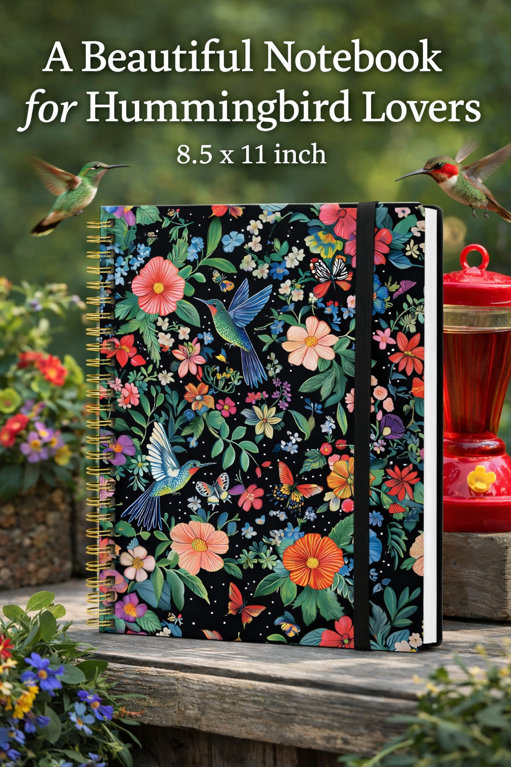 Capture your hummingbird sightings, garden plans, and daily thoughts in this spacious 8.5" x 11" spiral notebook. With its cheerful hummingbird design, smooth no-bleed paper, and lay-flat binding, it’s perfect for writing while the feeders are buzzing or preserving the little moments that make hummingbirds so special.